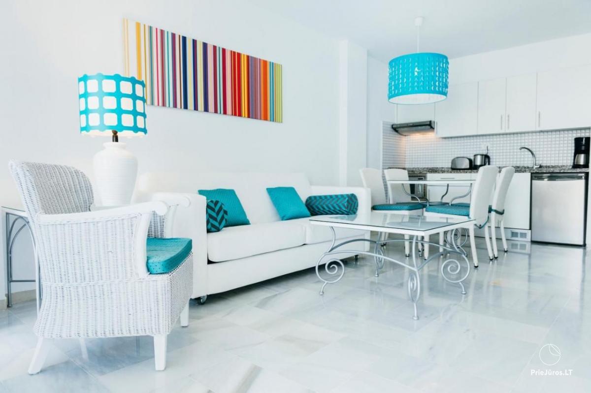 Located in front of Playa de Troya, Palm Beach offers stunning views of the ocean and the island of Tenerife in the beautiful Playa de Las Américas area. Situated in a vibrant area of leisure, entertainment, and shopping in southern Tenerife, these apartments in Playa de Las Américas are the perfect choice for couples and families seeking comfort close to the island’s most spectacular beaches. Don’t miss the opportunity to enjoy the best combination of services and vacation accommodation in a prime location in Tenerife.